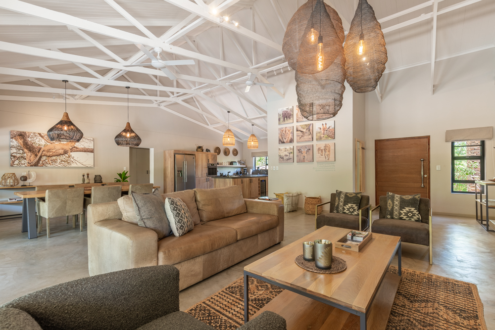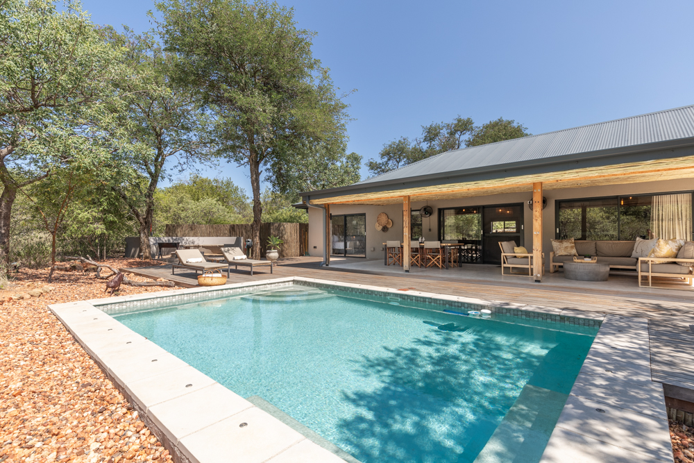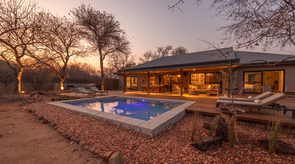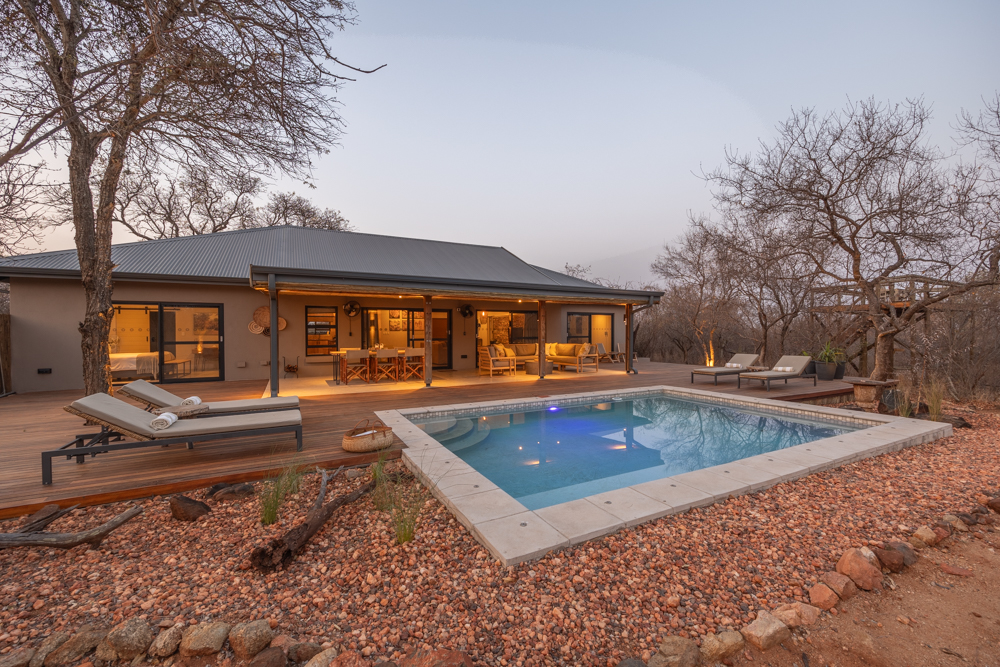 Comfort, luxury and attention to detail ensure that you will experience an incredible vacation in this extraordinary environment. The beautiful villa is nestled among mature, indigenous trees in a secluded spot on the Hoedspruit Wildlife Estate.