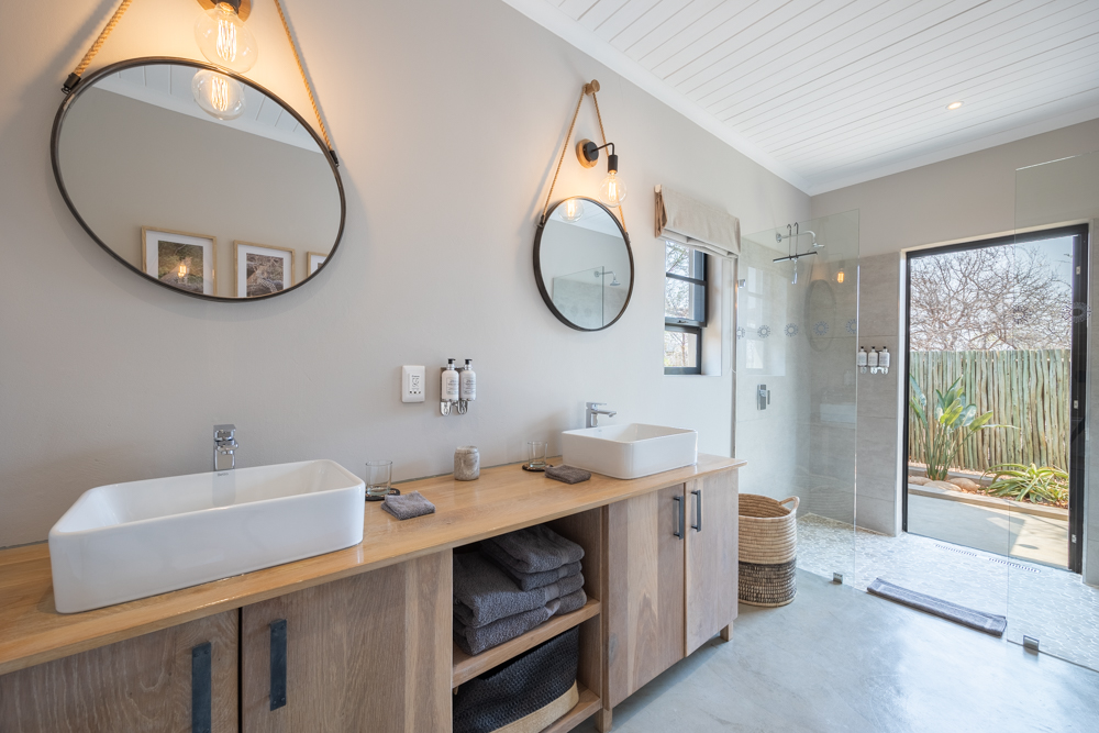 A highlight (in every way) is the elevated viewing deck, which gives you a spectacular view over the African bushveld. It’s romantic, it’s peaceful, and you’ll feel your heart expand to the horizon as you enjoy coffee, a meal, or a sunset from this unique vantage point. We recommend setting your alarm early one morning to watch the sunrise over the bush and listen to all the birds waking up. Something spectacular that you should not miss is to make a stargazing evening from the deck. Especially good when the moon is gone.