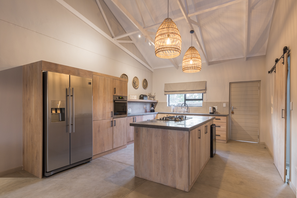 The kitchen is designed so that everything is easy to reach, with a separate utility room for the large appliances (washing machine, dryer and dishwasher). The kitchen is fully equipped so you can eat as often and as creatively as you like – there is a South African cookbook for inspiration – with a high-end gas stove and oven for gourmet creations. There is also a private reverse osmosis water system installed, so the water is safe to drink. If you don’t feel like cooking, a private chef can be booked to prepare a real South African meal for you or even do a Braai experience!