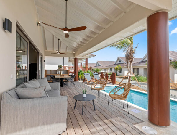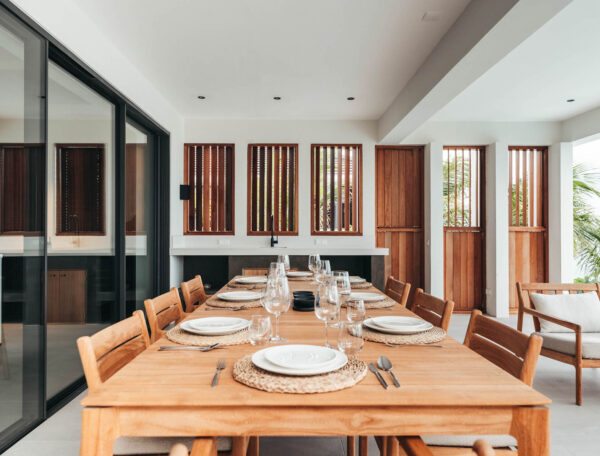 Buiten vindt u uitgestrekte terrassen en privézwembaden, ideaal voor ontspanning of om gasten te entertainen. De villa’s zijn zo gepositioneerd dat ze maximale privacy bieden, waardoor u in alle rust kunt genieten van zonsondergangen over de groene fairways of een rustige ochtend met koffie, terwijl u de vroege golfers observeert.