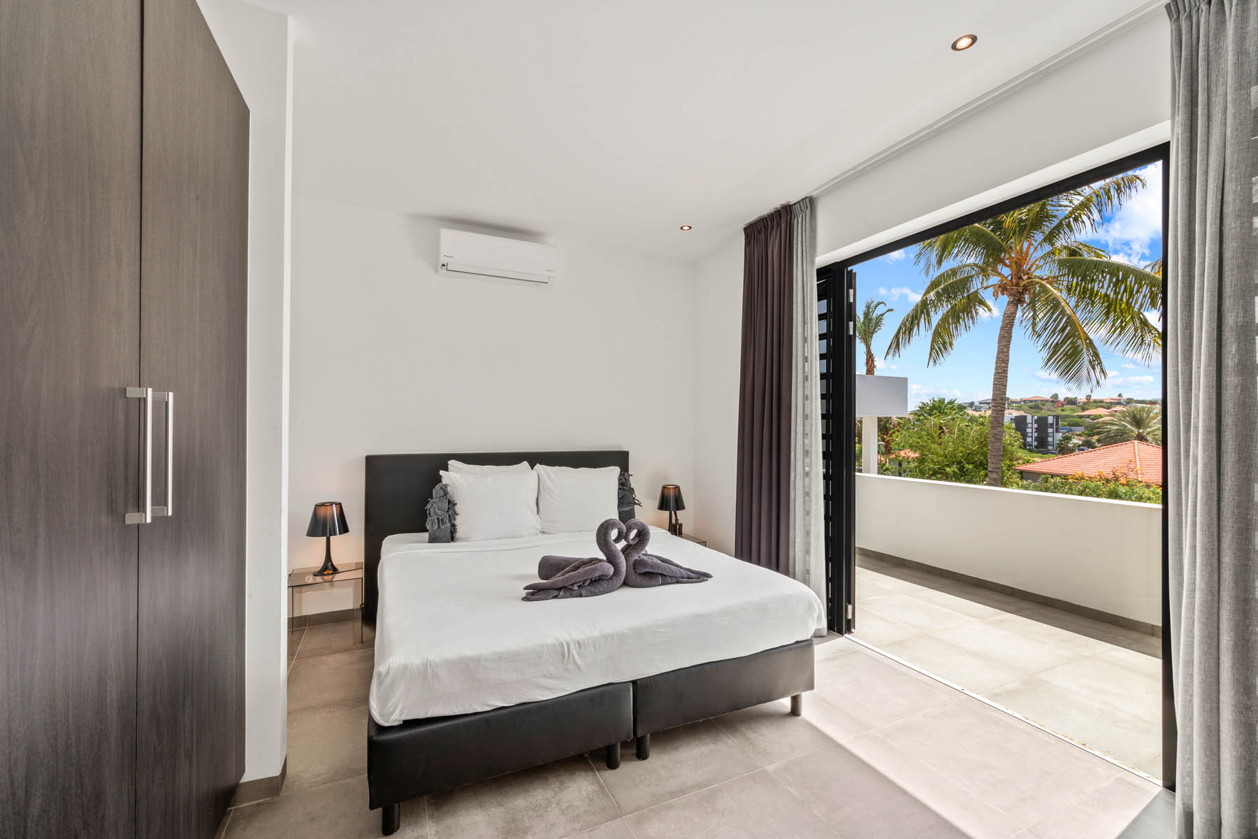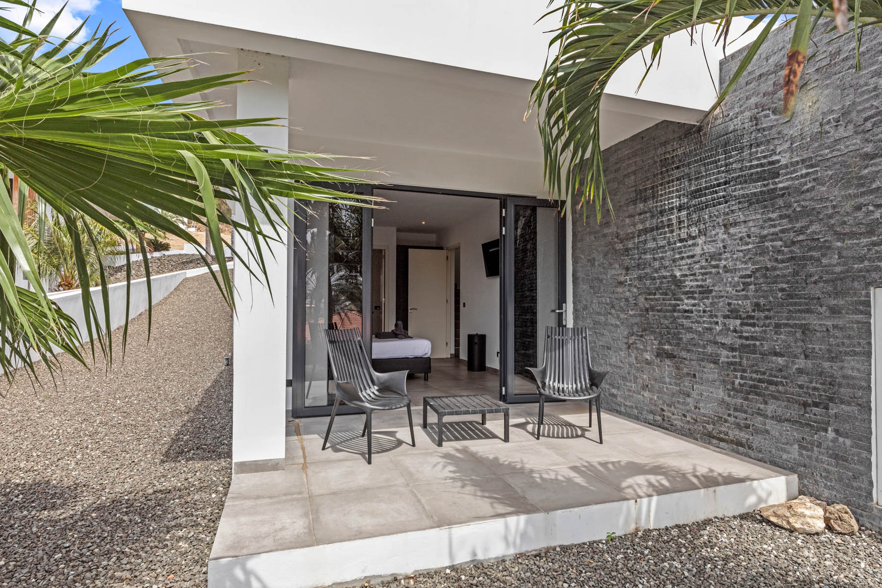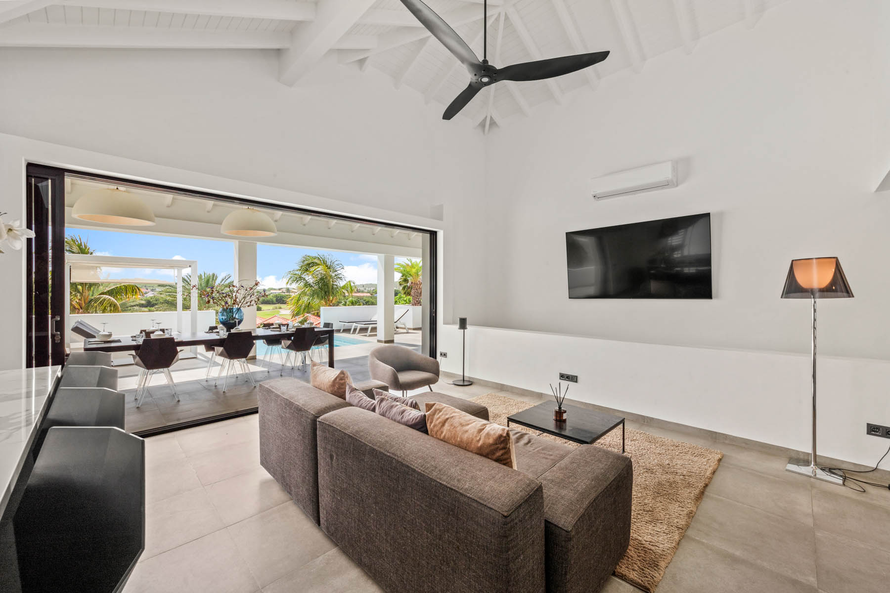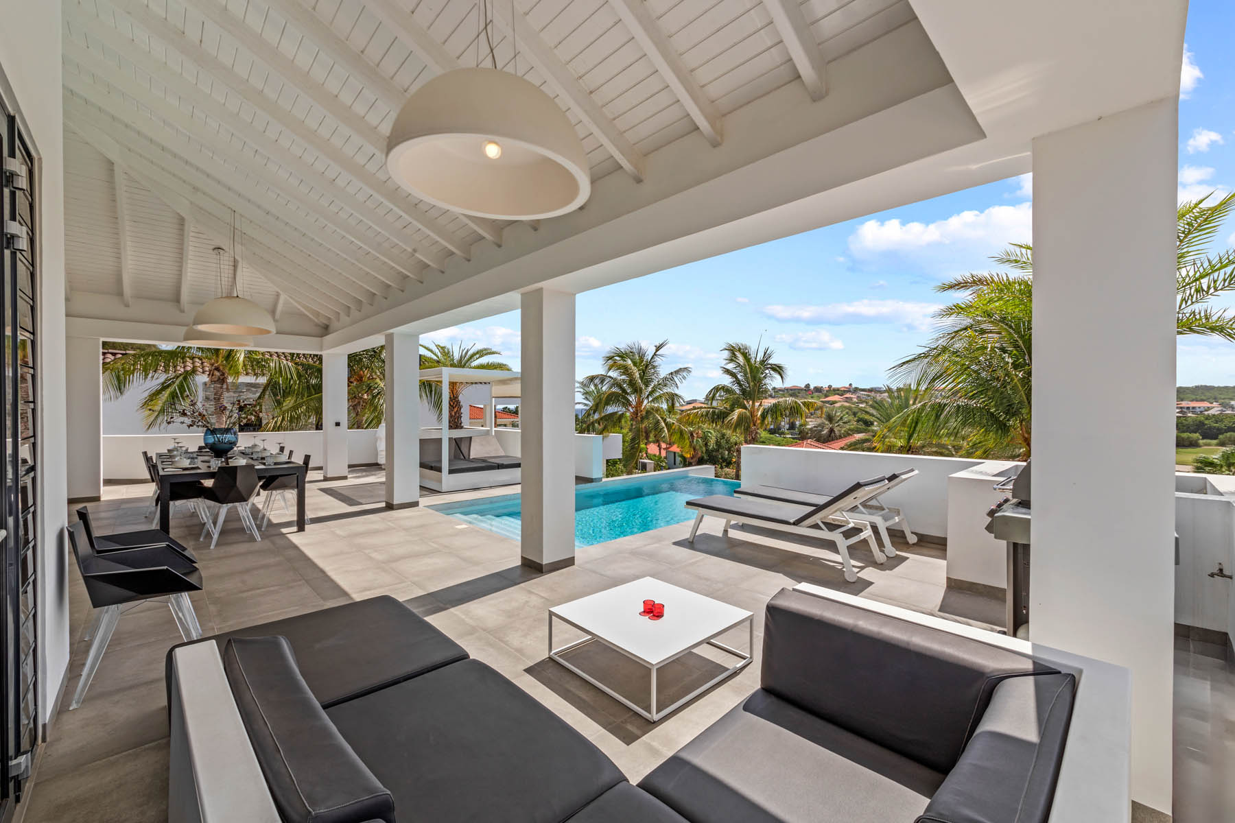 Stap de drempel over om de ruime en comfortabele ingerichte woonkamer te ontdekken, perfect om te ontspannen na een dag verkennen van de ongerepte stranden en spannende attracties van Curaçao. De woonkamer heeft een grote smart-tv, comfortabele stoelen en een moderne inrichting die een gezellige sfeer creëert. Het open concept design vloeit naadloos over in de volledig uitgeruste keuken, met high-end apparaten en veel ruimte op het aanrecht om maaltijden te bereiden. De aangrenzende eetkamer is perfect om te genieten van een maaltijd met vrienden en familie. Er zijn vijf gezellige kamers met comfortabele bedden, luxe beddengoed, televisies en veel garderoberuimte voor je spullen. Drie van de kamers hebben een eigen badkamer. Neem een verfrissende duik in het heerlijke zwembad en geniet van de tuin met terras en ontspan lekker in de zon bij het zwembad op de ligstoelen of in de schaduw.