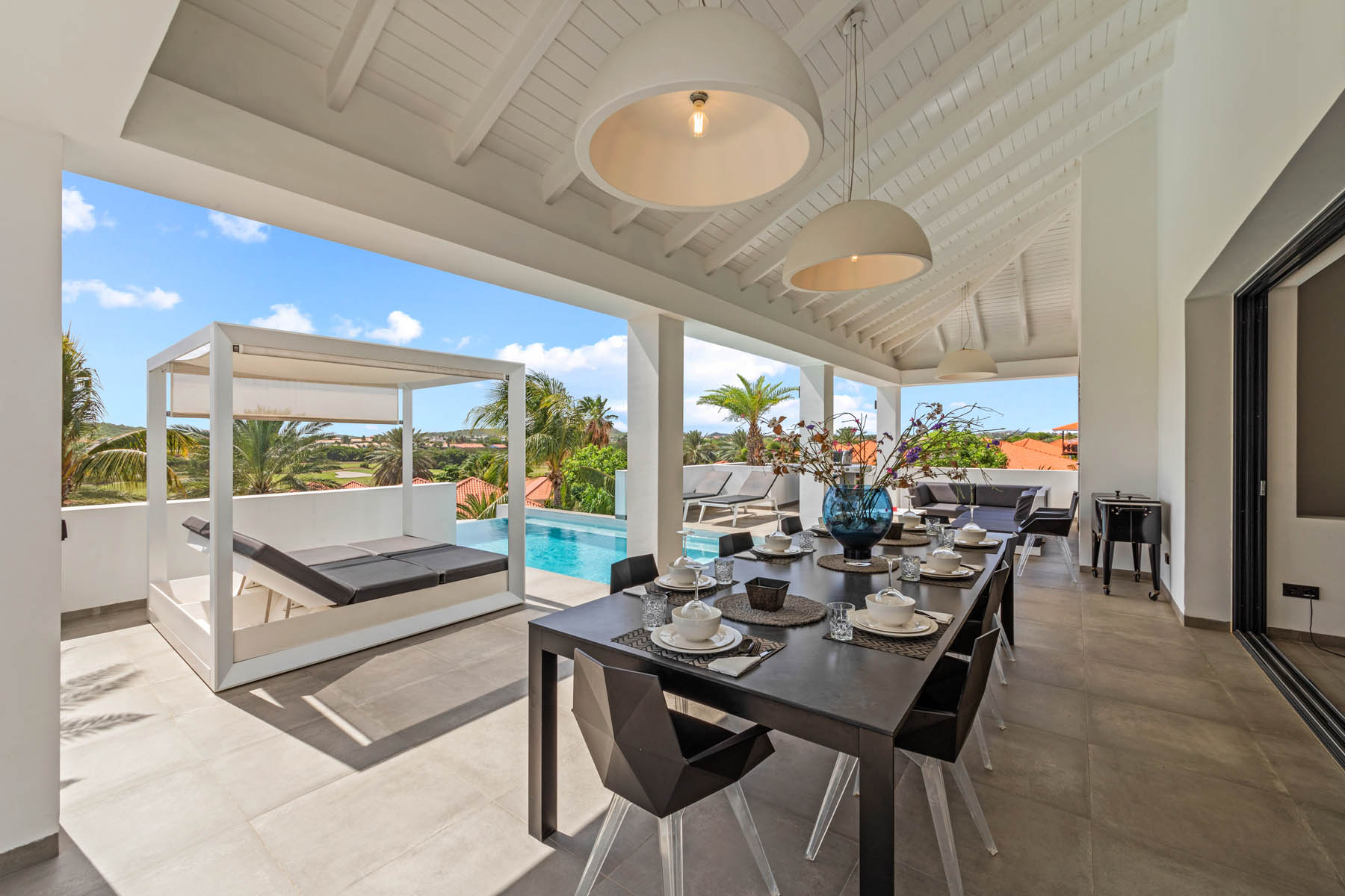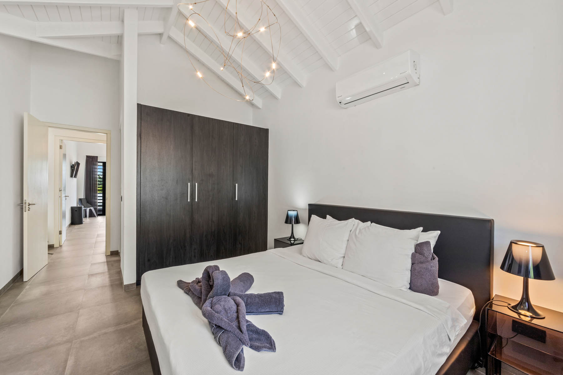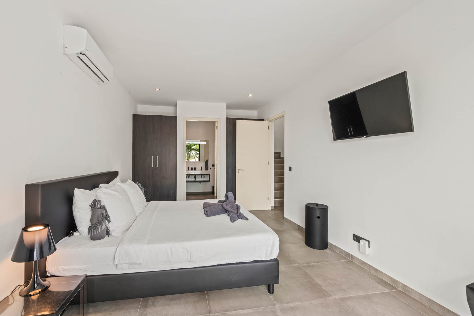 Met 5 luxe suites en een eigen overloopzwembad biedt deze moderne villa ultiem comfort en stijl om te genieten van een unieke Caribische luxe binnen- en buitenervaring. De villa heeft 5 luxe slaapkamers en 4 badkamers. Het is maar 3 minuten van het strand en heeft een privé zwembad. In de schaduwrijke buiten eethoek kunt u s’ avonds heerlijk uitgebreid dineren. Voldoende ligstoelen en een Barbecue om met de ondergaande zon heerlijke BBqen.