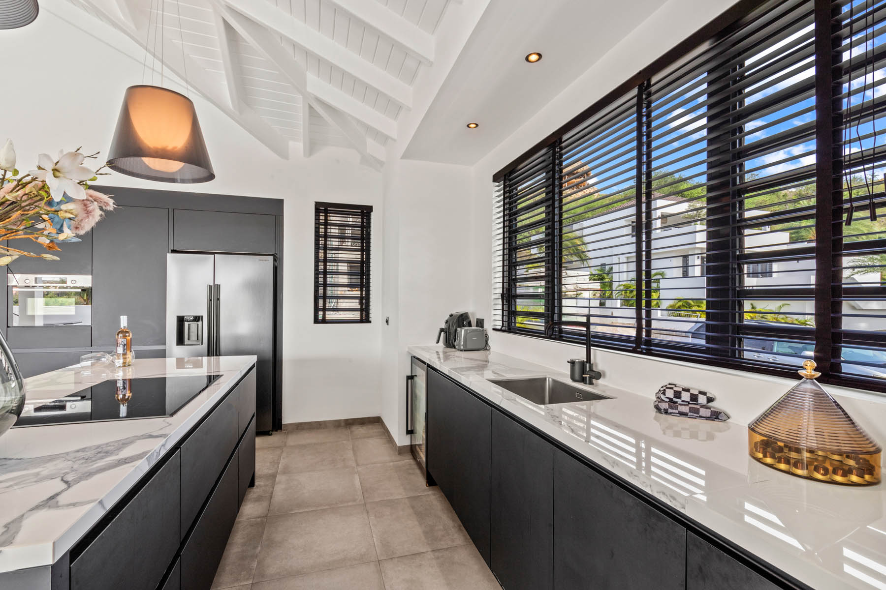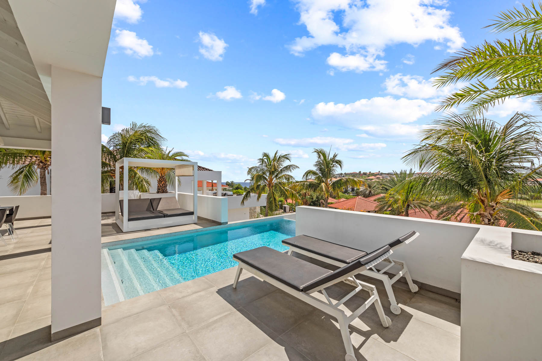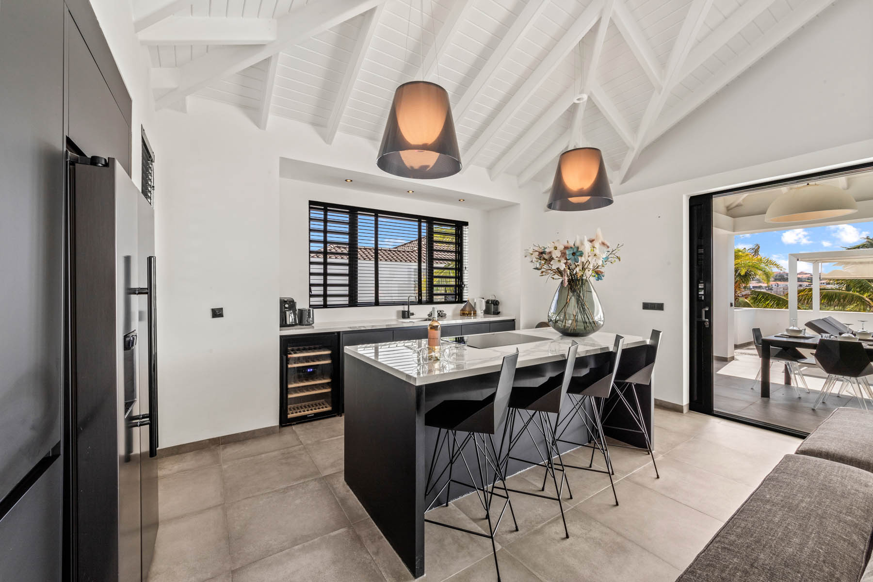 Met 5 luxe suites en een eigen overloopzwembad biedt deze moderne villa ultiem comfort en stijl om te genieten van een unieke Caribische luxe binnen- en buitenervaring. De villa heeft 5 luxe slaapkamers en 4 badkamers. Het is maar 3 minuten van het strand en heeft een privé zwembad. In de schaduwrijke buiten eethoek kunt u s’ avonds heerlijk uitgebreid dineren. Voldoende ligstoelen en een Barbecue om met de ondergaande zon heerlijke BBqen.