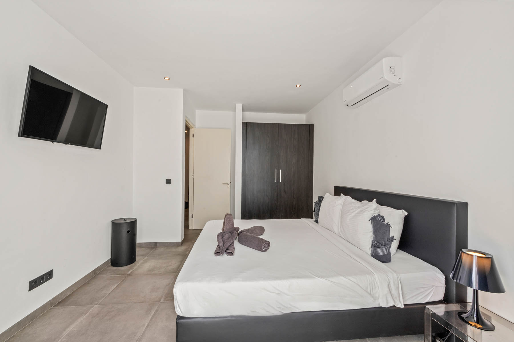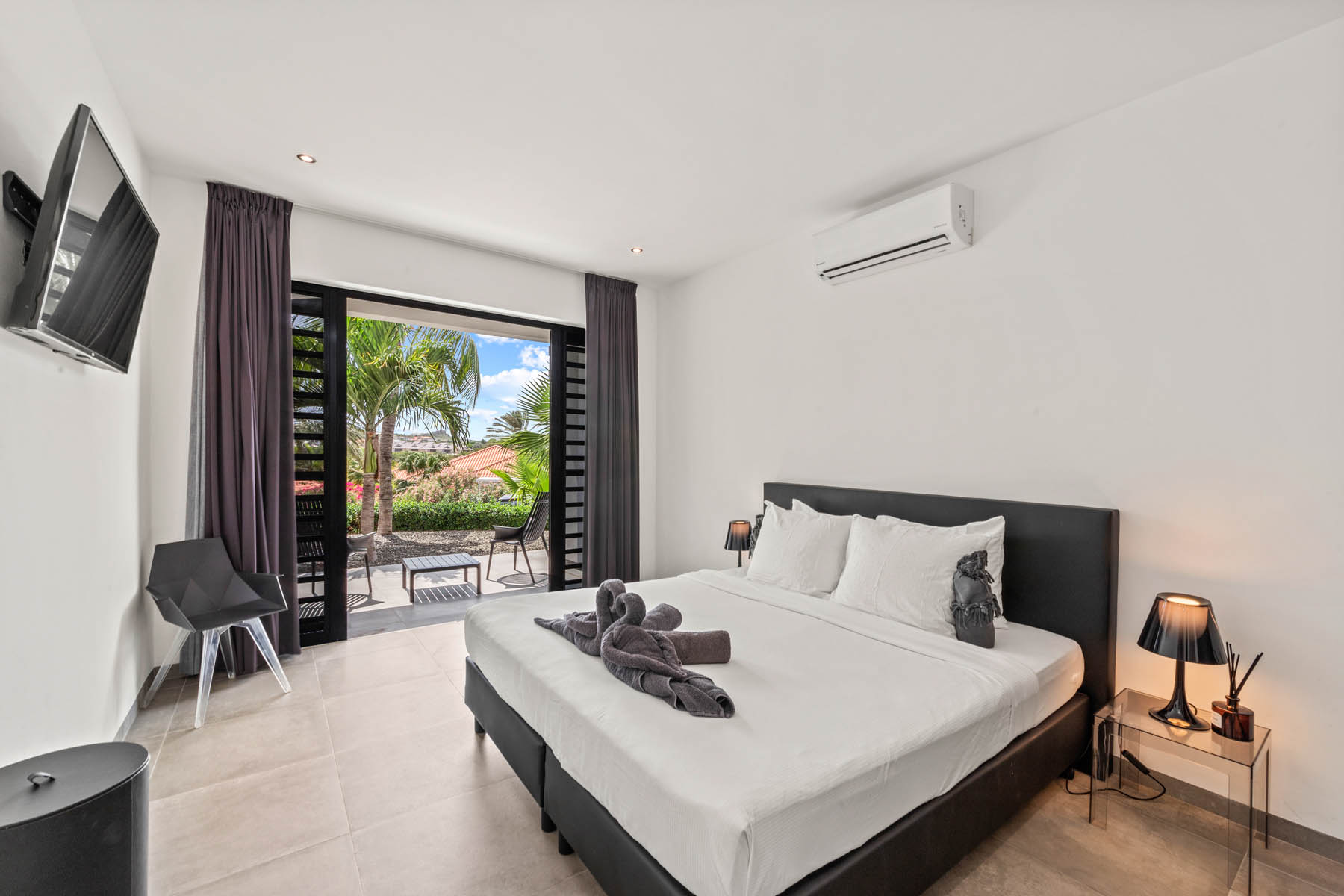 Slaapkamer 2: kingsize bed, tv, eigen badkamer, terras
