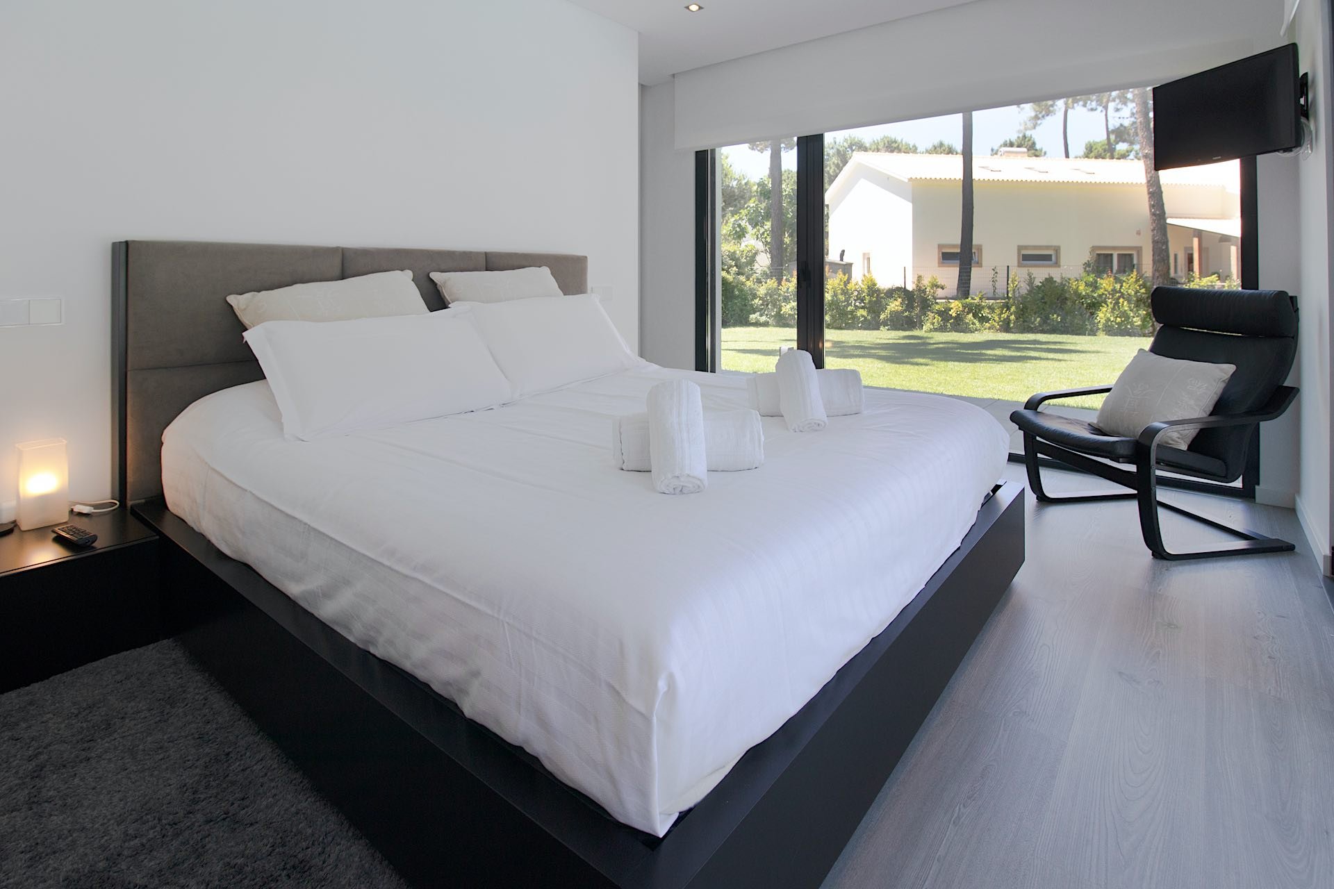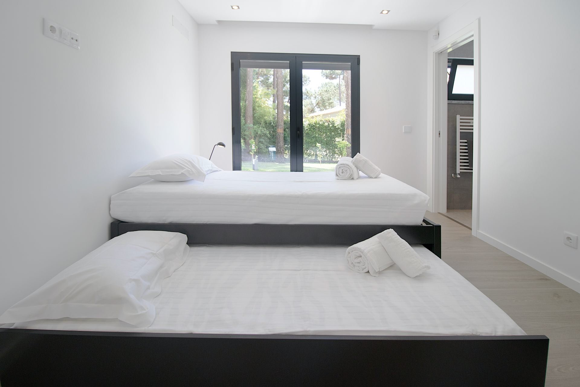De begane grond van de villa omvat een volledig uitgeruste keuken, compleet met een Nespresso-koffiezetapparaat, een uitnodigende en ruime woon- en eetkamer, een mastersuite met een tweepersoonsbed van 1,8 m x 2,0 m, en een en-suite badkamer met een inloopdouche. Bovendien is er een slaapkamer uitgerust met twee eenpersoonsbedden van 0,9 m x 2 m, met een ladebed met tevens een badkamer met een walk-in douche. Ook is er een wasruimte, Smart TV en Wi-Fi aanwezig.