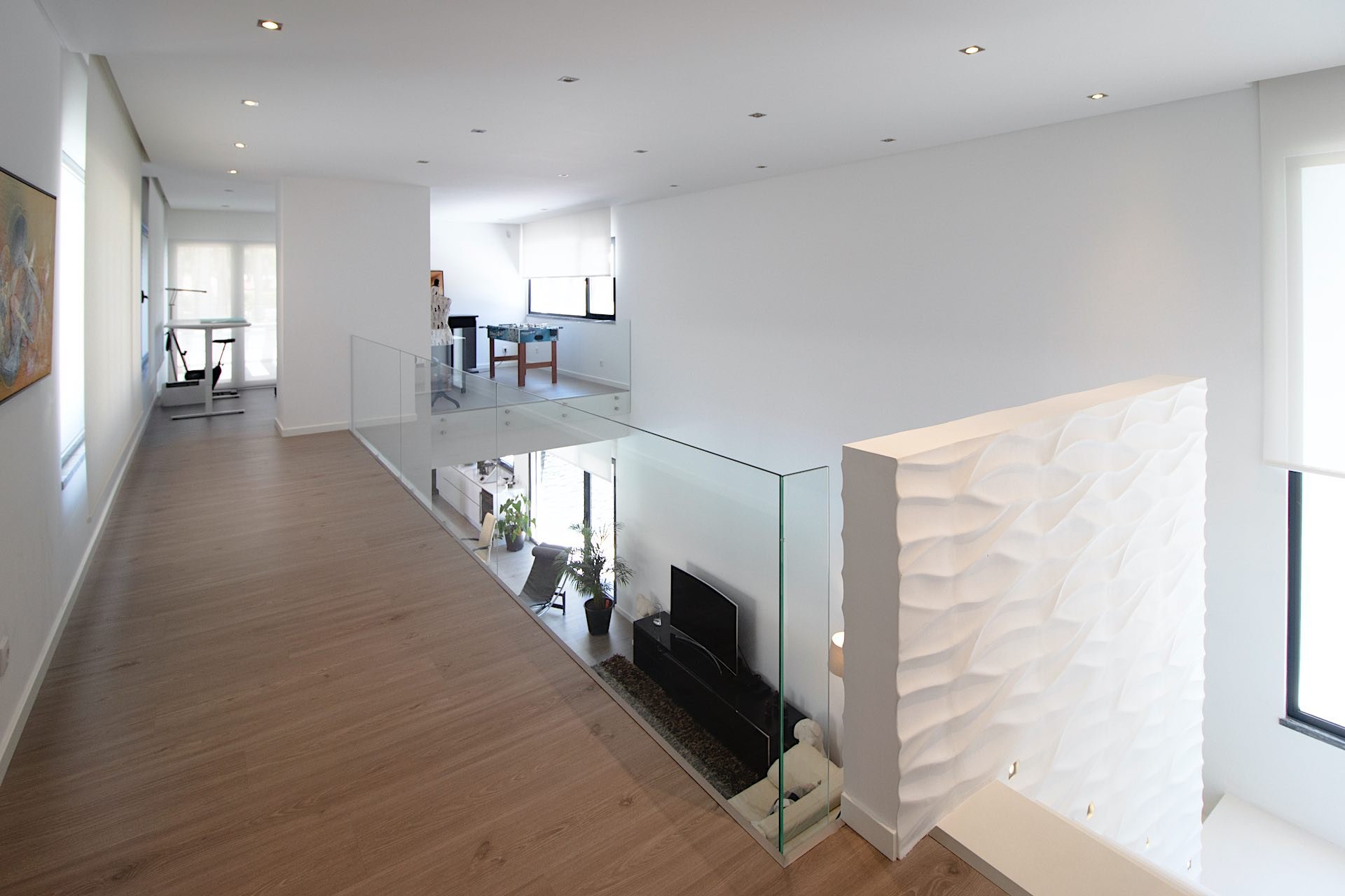 Op de eerste verdieping worden gasten begroet door twee opmerkelijke suites, elk versierd met tweepersoonsbedden van 1,6 m x 2,0 m en uitgerust met en-suite badkamers met walk-in douches. Een bijkomend genot op dit niveau is een kleine gym en een voetbaltafel, die recreatieve mogelijkheden biedt voor onze gewaardeerde gasten.