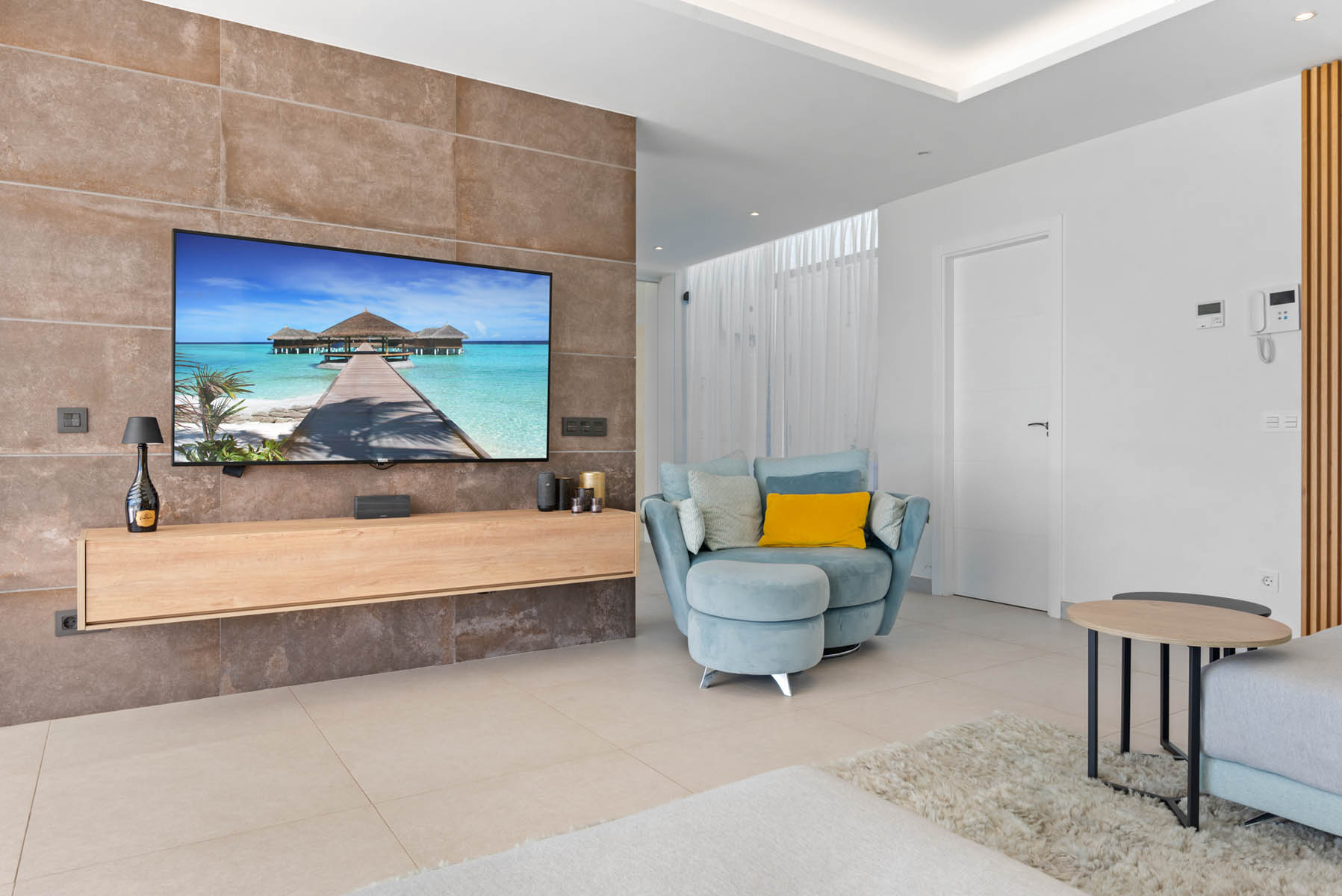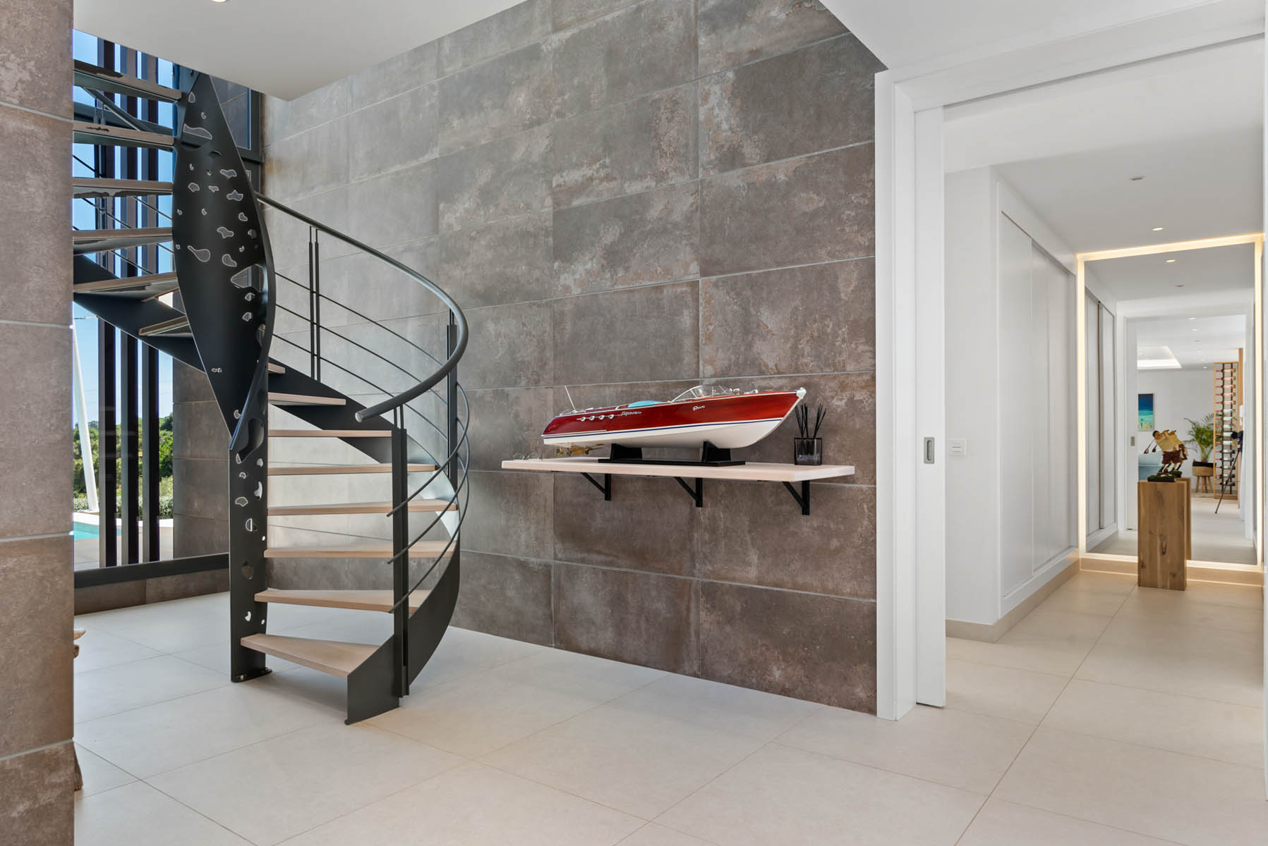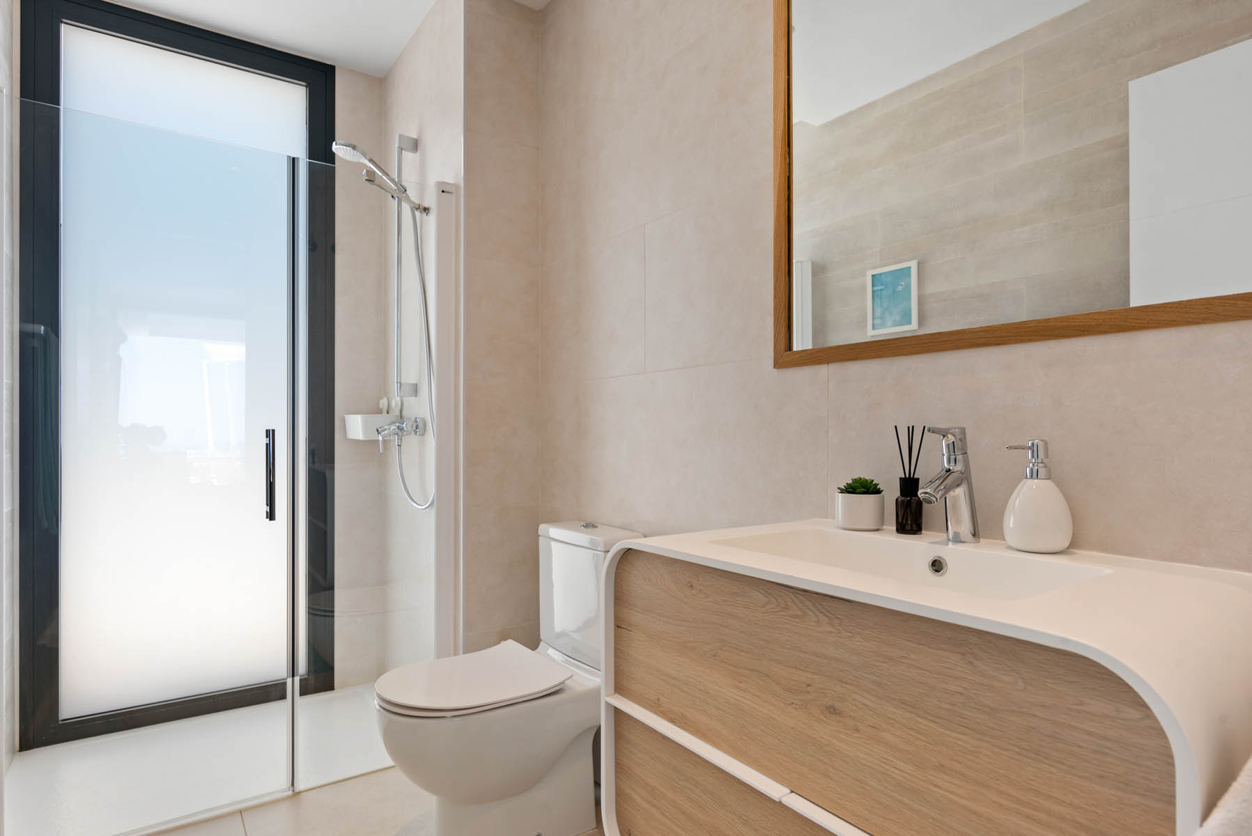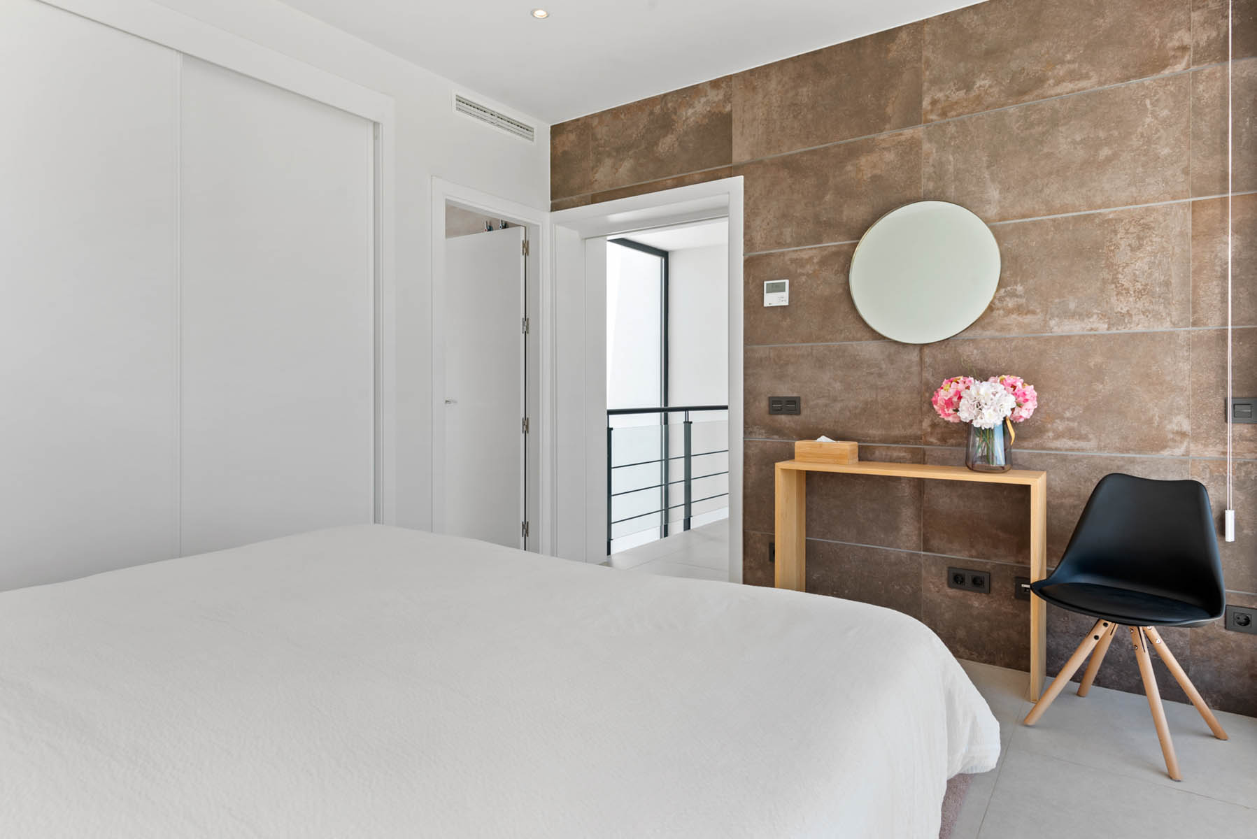 Beneden living, open keuken, salon, toilet en douche, master bedroom met dressing en douchekamer. 1e verdieping slaapkamer met dressing, badkamer (ligbad), en 2 slaapkamers met douche. Elke kamer heeft zijn eigen terras met prachtig uitzicht. Vooraan 1e verdieping gemeenschappelijk terras. Elk element, vanaf de architectuur die vorm geeft aan het gebouw tot het kleinste ontwerpdetail, streeft dezelfde filosofie na. Het ontwerp accentueert de relatie tussen exterieur en interieur, waardoor een unieke harmonieuze ruimte ontstaat. Het interieur van het huis is ontworpen om veel daglicht binnen te brengen, tot zelfs in de badkamers. Het zwembad is professioneel verwarmd via zonnecollectoren en met een warmtepomp. De villa ligt in een doodlopende, zeer rustige straat, vlak bij de golf. Privé parking achter de automatische poort of op straat voor de deur.