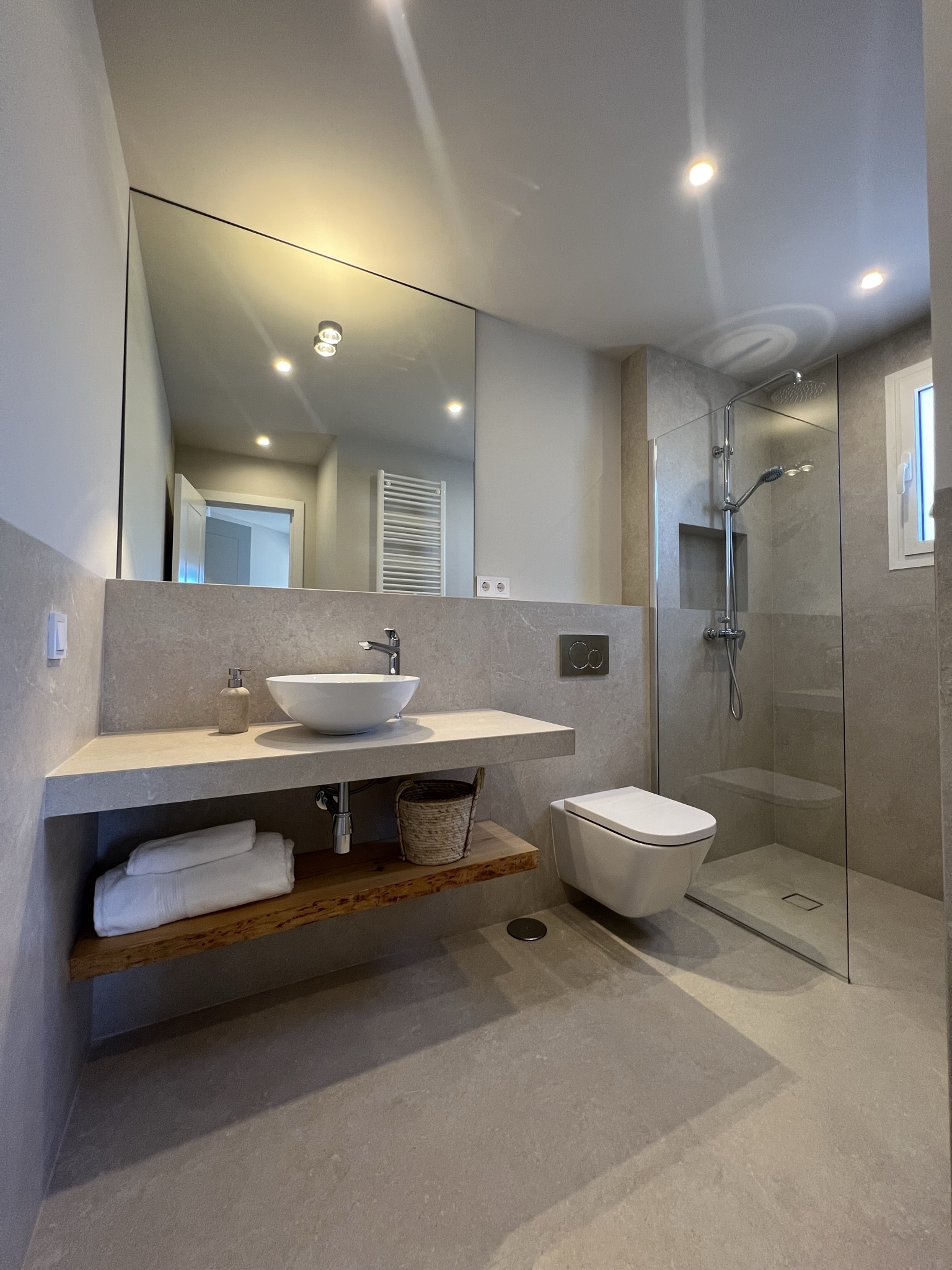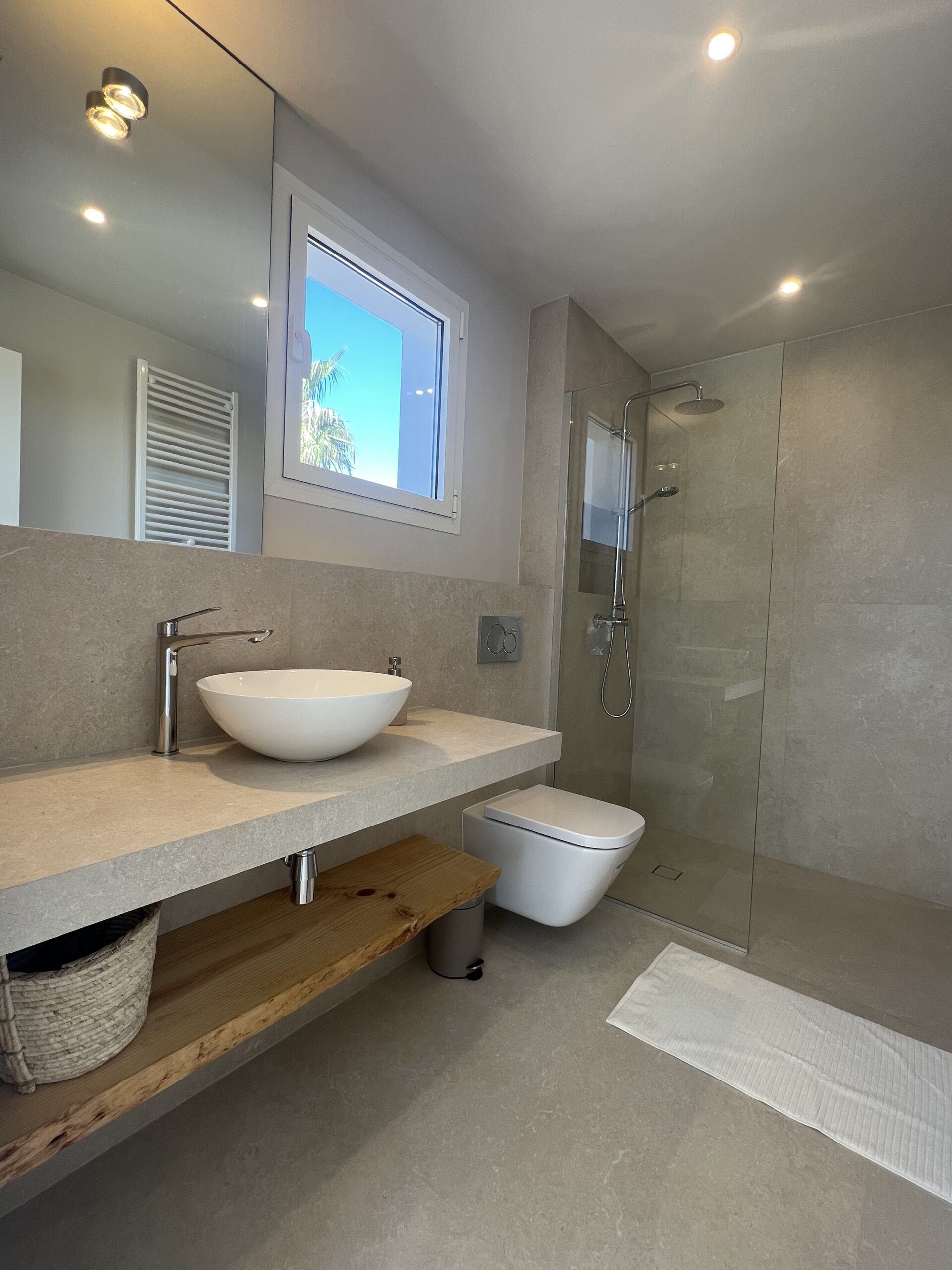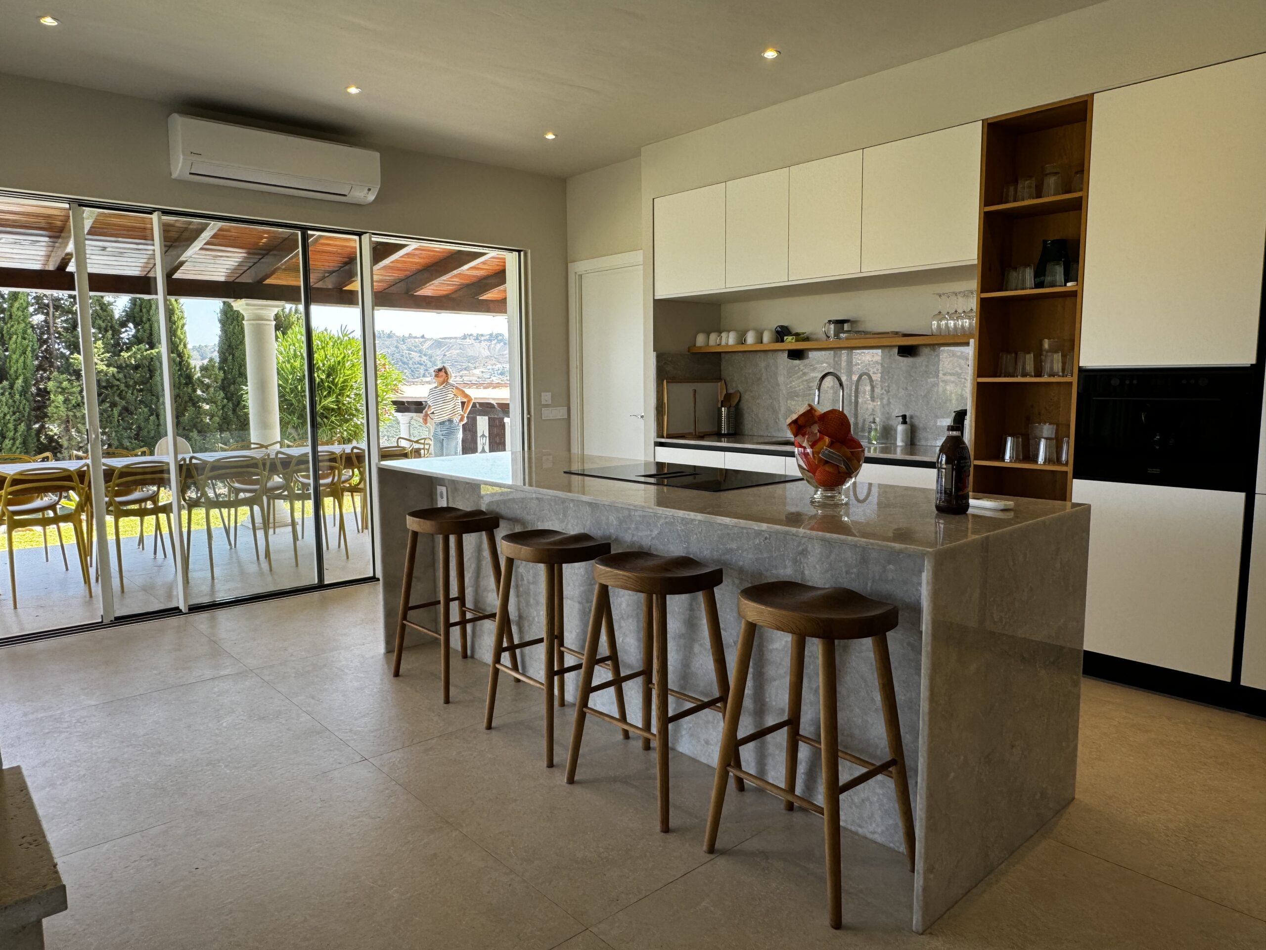 De villa is verdeeld in een begane grond en een eerste verdieping. Het is ook zeer goed te gebruiken met twee verschillende families. De villa heeft op de begane grond vier slaapkamers met ieder een tweepersoonsbed en een kinderslaapkamer met stapelbed. Tevens vier badkamers met toilet, douche en / of bad. Op de eerste verdieping zijn nog twee tweepersoons slaapkamers en twee badkamers. Op de begane grond zijn er diverse woonvertrekken. De villa biedt een woonkamer en nog een tweede woonkamer met open keuken en aangrenzende eetgedeelte. TV met satelliet-TV En open haard zijn beschikbaar.